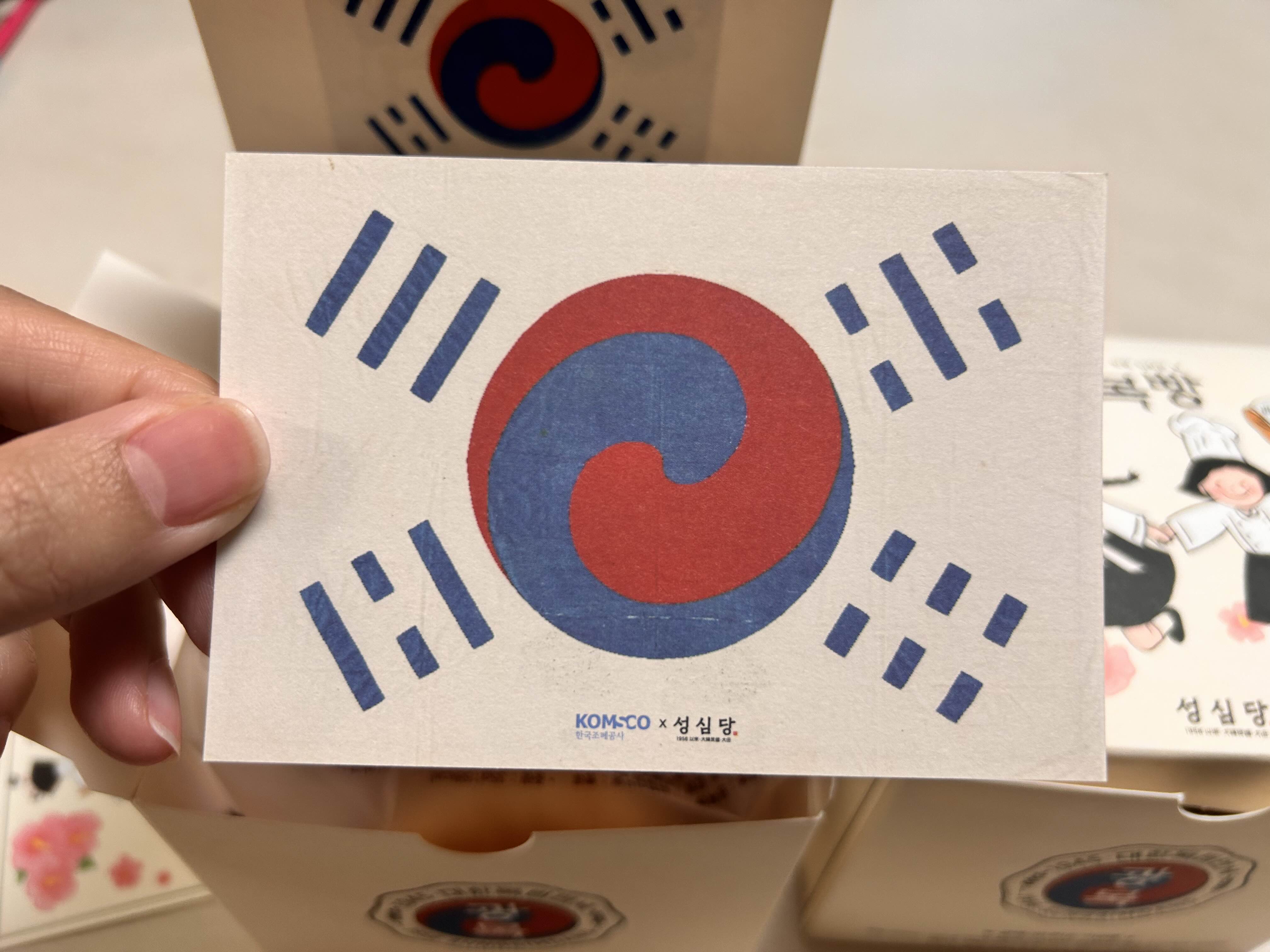 이렇게 작은 엽서 형태로 태극기가 있어요. 그리고, 뒷편도 한번 볼까요?