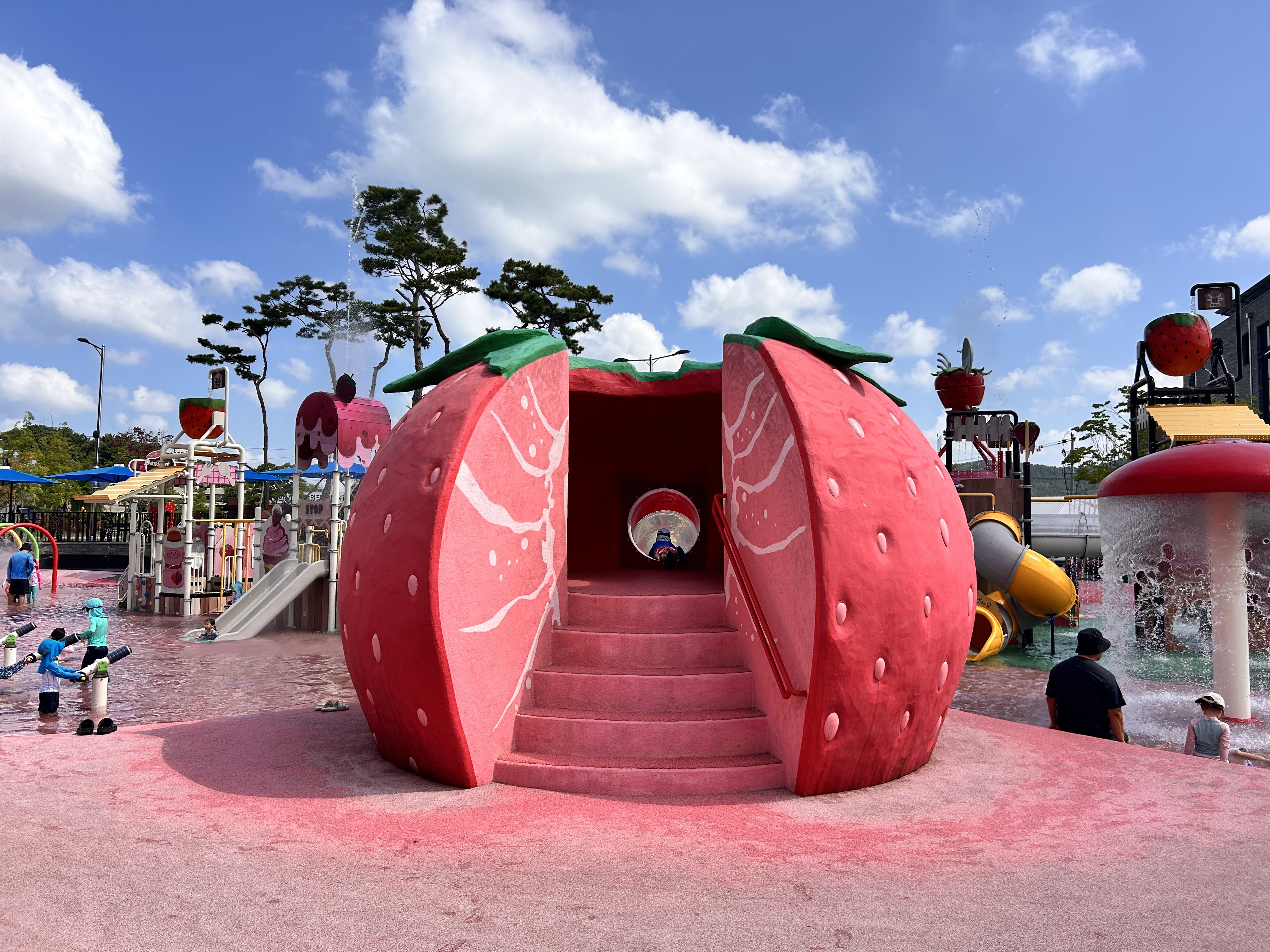 작년에 이곳을 알게된 이후로, 올해 또 딸기향농촌테마공원 물놀이장을 방문하게 되었어요. 작년에도 정말 많이 왔었는데, 올해는 또 얼마나 올지 모르겠네요. 아이가 정말 좋아해서, 주말이면 딸기물놀이장에 가자고 조르더라구요. 초등학교 저학년까지는 놀기 딱 좋아서 빨리 알아둘수록 이득인 곳입니다.