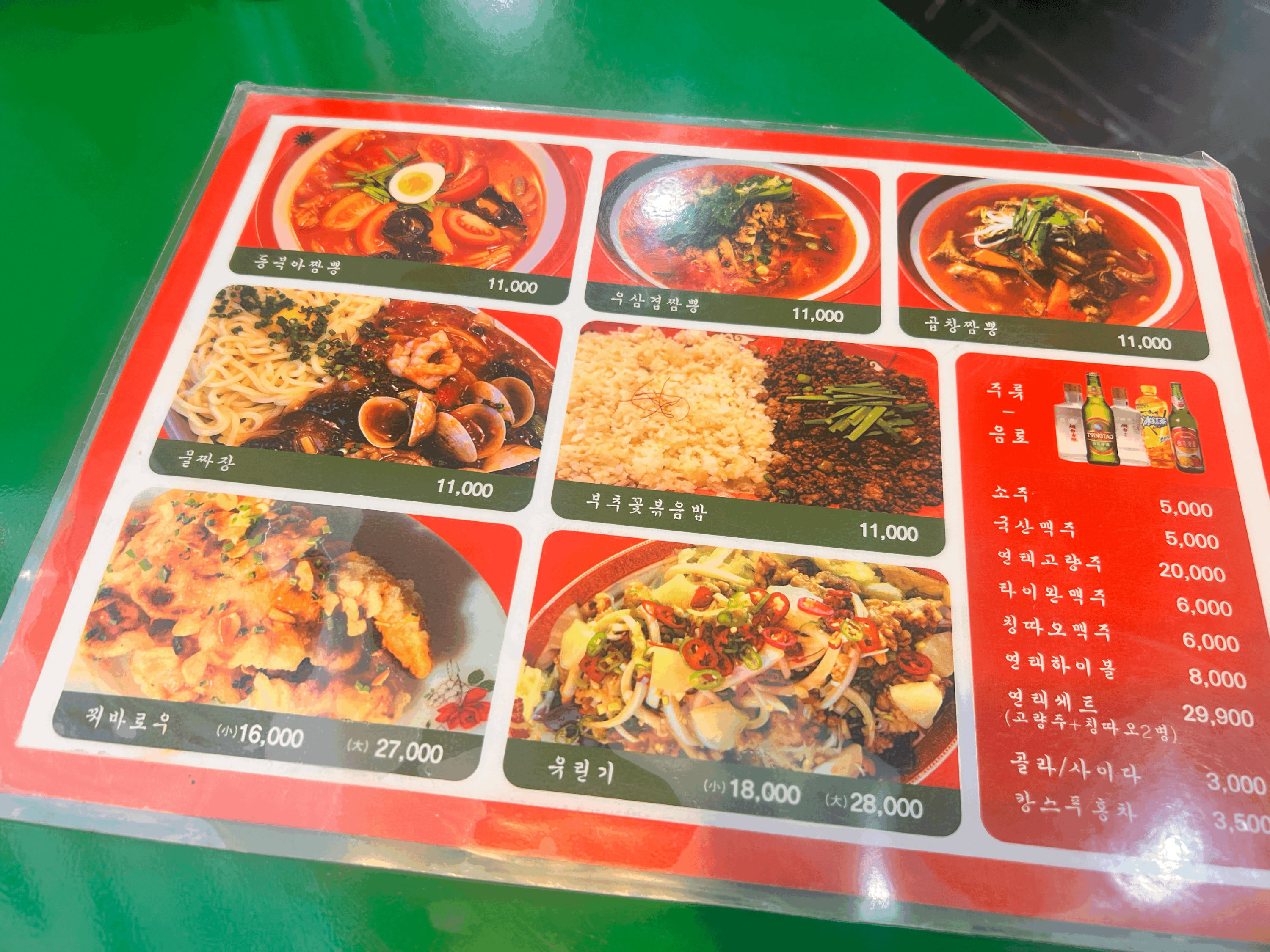 동북아의 메뉴판은 꽤나 심플한 편인데, 일반 중식당의 메뉴와 달리 조금 특별하다. 짬뽕안에 토마토가 들어있는 동북아 짬뽕, 우산겹 짬뽕, 곱창 짬뽕이 있고, 물짜장과 볶음밥이 있다. 그리고 요리로는 꿔바로우와 유린기! 아주 심플하고 좋다. 둘이 방문했는데, 식사 둘과 꿔바로우를 시켜보았다.