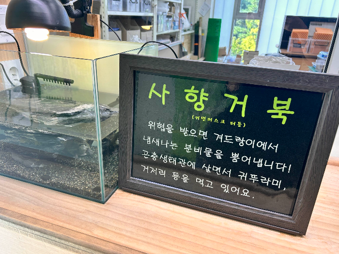 2층에서 거북이까지 만나고 난 후, 곤충생태관을 나올 수 있었어요.