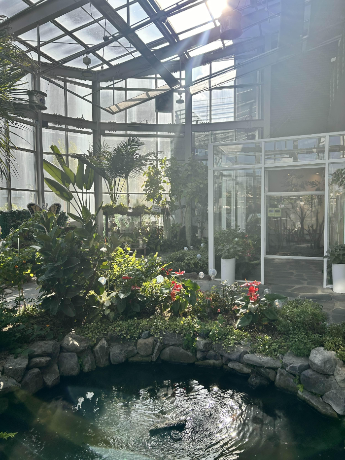 곤충농장은 햇살이 비춰주는 통창에다가, 안에는 연못도 있어요. 잉어들이 살고 있답니다.