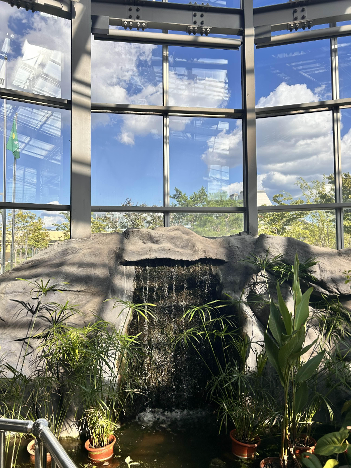 곤충농장은 햇살이 비춰주는 통창에다가, 안에는 연못도 있어요. 잉어들이 살고 있답니다.