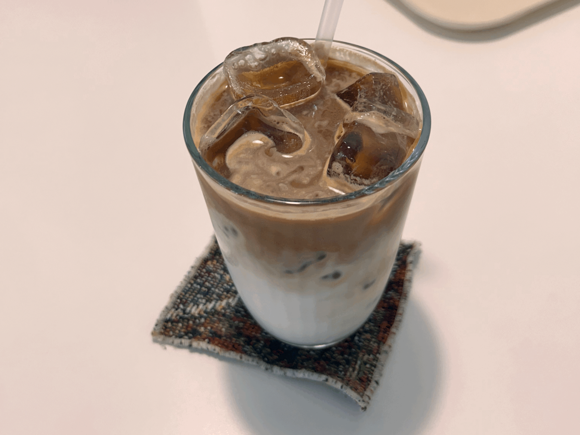 조명이 비추는 테이블인데, 사진을 찍어보니 더 느낌이 좋다. 블랙과 화이트 인테리어가 맘에 든다. 내가 시킨 라떼 음료가 나왔는데, 상당히 맛있는 라떼였다. 고소하고 살짝 달달함까지 느껴지는 라떼. 라떼 좋아하시는 분이라면 무조건 라떼를 드셔보시길 추천드린다.