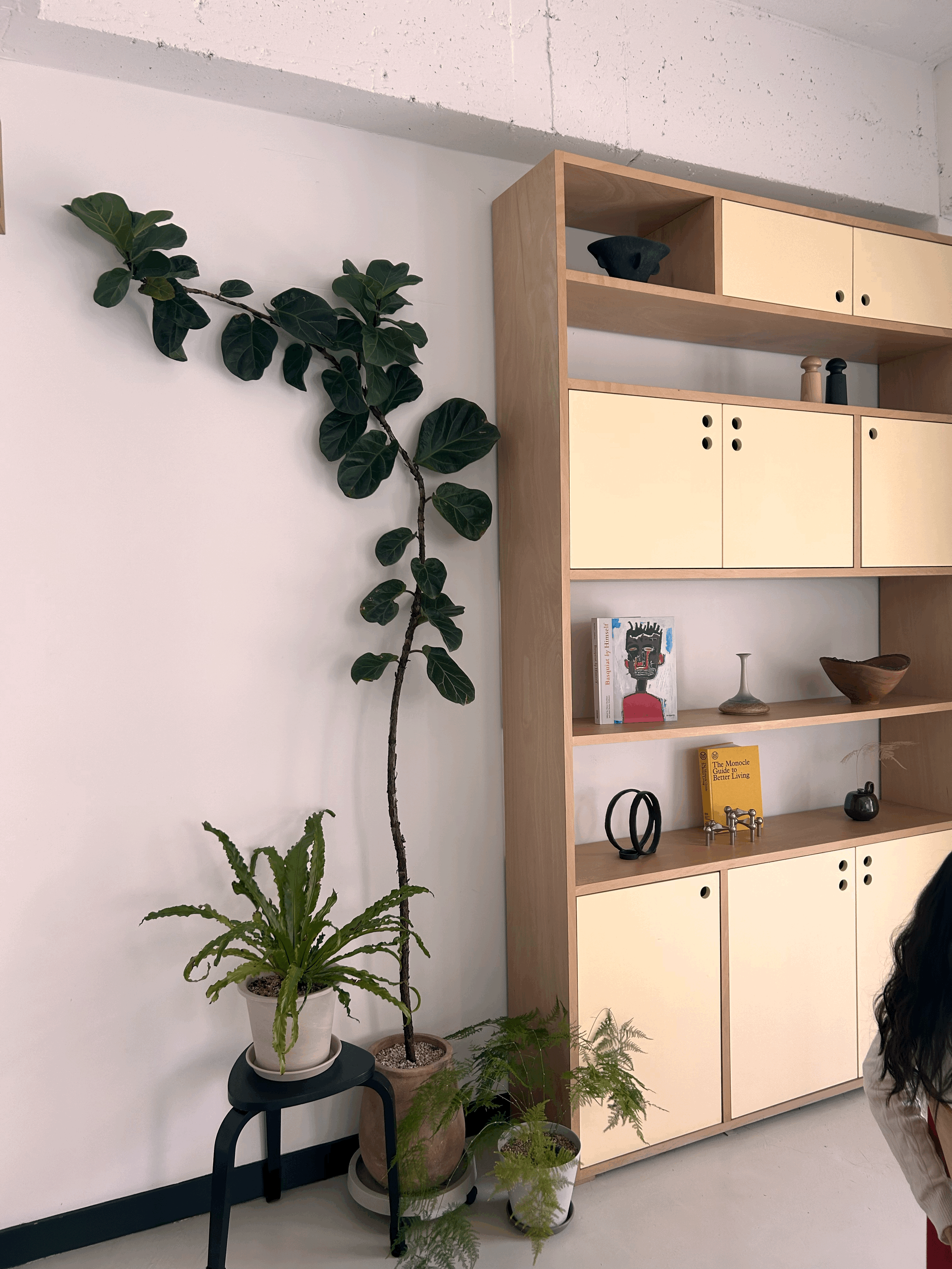 한쪽 벽면이 꾸며진 모습인데, 나무가 정말 신기하게 얇고 길쭉하게 자라나 있어서 눈길이 갔다.