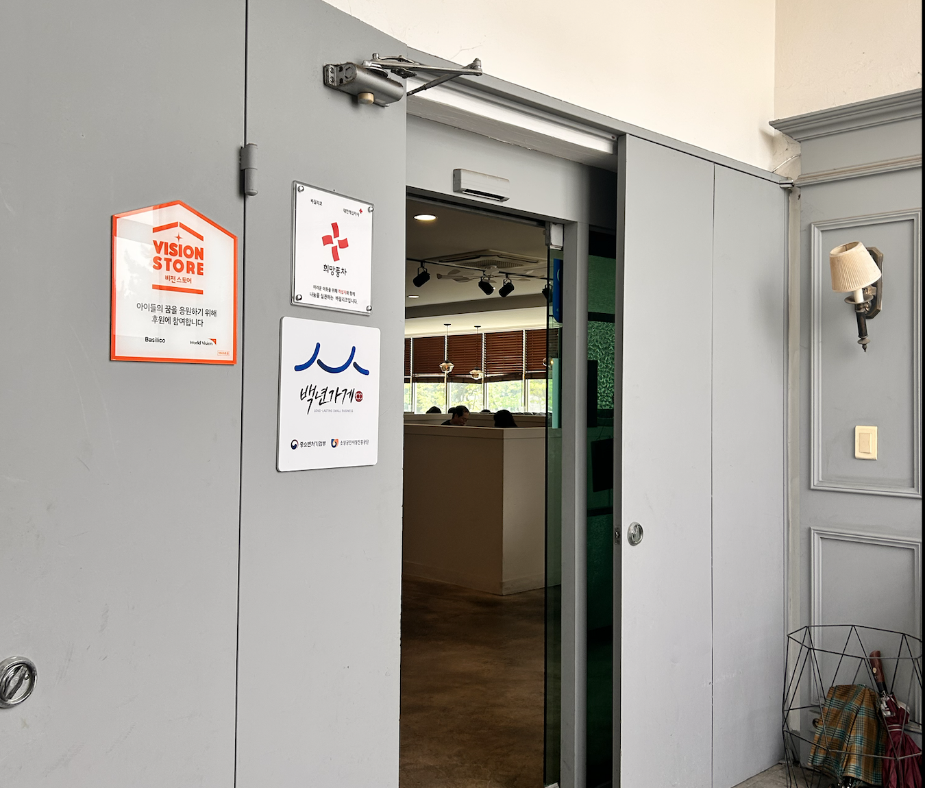 입구에 들어서면 이렇게 백년가게라 써진 표지도 보이고, 아이들을 후원한다는 vision store의 표지도 함께 볼 수 있다. 한층 위로 올라가면 식당인데, 계단에 들어서자마자 시끌벅적한 내부 소리가 들린다. 아마 만석인가 보다. 아무래도 웨이팅을 해야 할 것 같아서 긴장되는 마음이 든다.