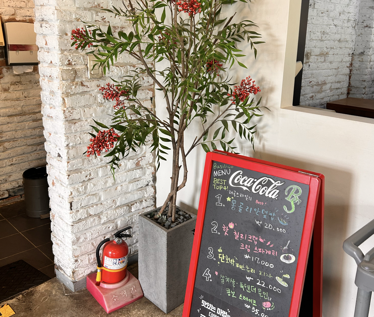 들어서면 가장 먼저 보이는 나무인데, 친정엄마가 좋아하는 나무라 기분이 좋아진다. 바로 앞에 베스트 메뉴 표지판에 보이는데, 역시 검색한대로 몽골리안덮밥이 가장 위에 위치해 있다. 스파게티 그리고 스테이크 메뉴도 있어서, 양식 전문 레스토랑이라 할 수 있는 곳이다.