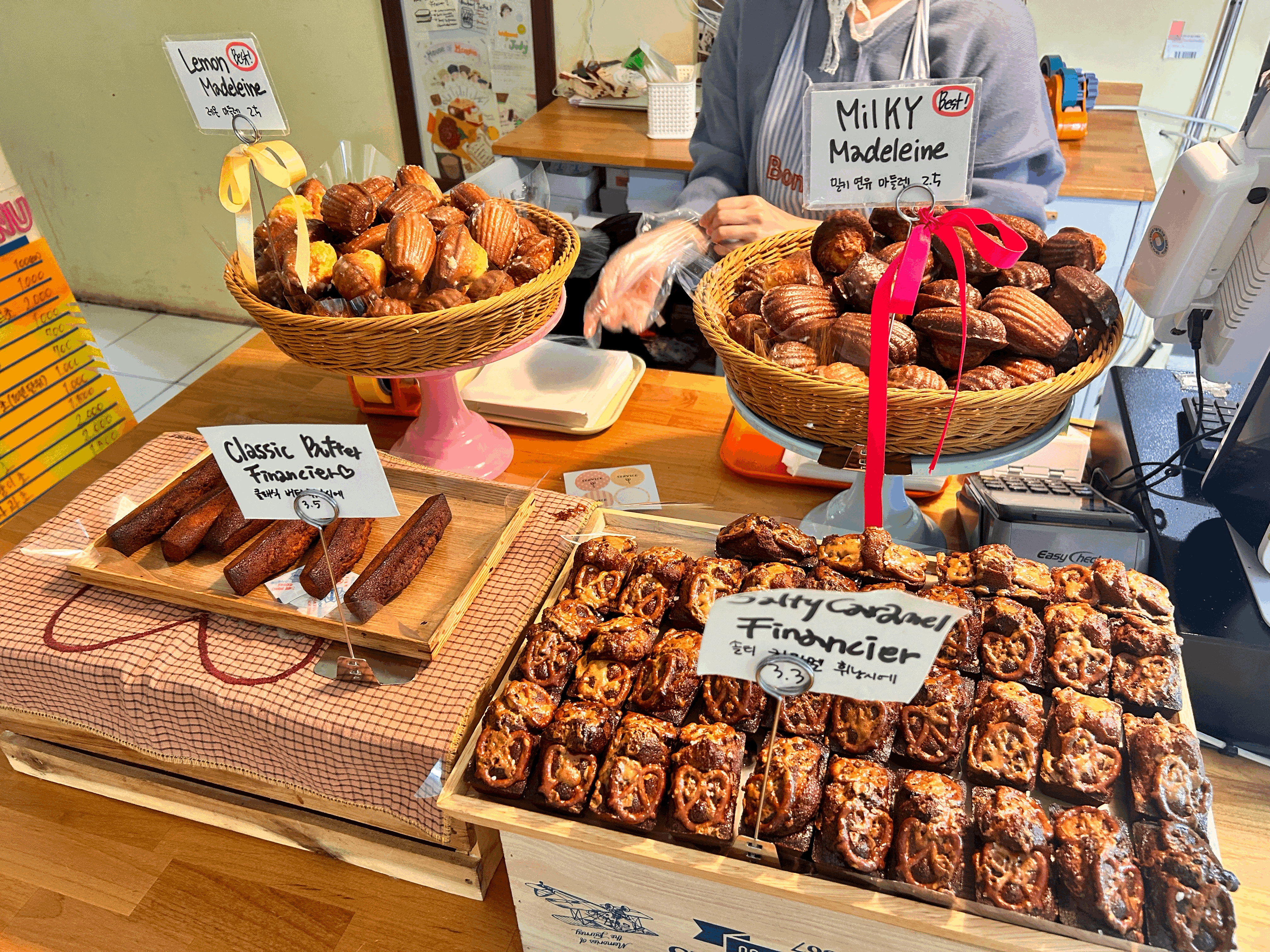 뭐든 1등이라면 믿음이 확 생기지 않나요? 대전의 농심 빵집은 2022년과 2024년 대전 빵축제 어워즈에서 1등을 차지한 곳입니다. 저 역시, 이 유명세를 듣고 도대체 1등을 한 빵집의 빵맛이 궁금하여 방문하였는데요. 이곳의 단연 인기 상품은 바로 마들렌입니다. 밀키 연유 마들렌과 레몬 마들렌이 베스트 메뉴인데, 저는 개인적으로 레몬 마들렌이 정말 상큼하고 달달하니 맛있더라고요. 다른곳에서는 느끼지 못한 상큼 달달한 맛과 마들렌의 그 단단함 정도가 아주 먹기 편하고 맛있는 식감입니다. 그리고, 휘낭시에도 정말 다양하고 맛이 좋습니다. 누네띠네 휘낭시에, 솔티 카라멜 휘낭시에 등 다양한 종류의 휘낭시에를 맛볼 수 있습니다. 개인적으로는 클래식이 제일 맛있더라구요. 한번씩 색다르게 하나씩 다른맛을 먹어보는것도 재밌습니다.