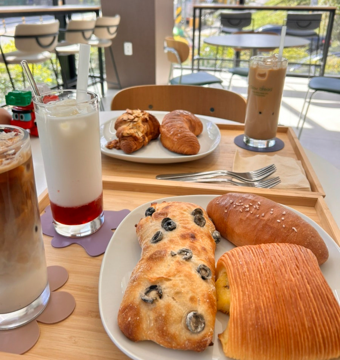 맛있는 빵집을 찾는 기준을 저는 치아바타로 잡고 있어요. 치아바타를 맛있게 잘하는 집은 전반적으로 빵이 맛있더라구요. 치아바타는 식사 빵으로도 많이들 먹는 만큼 소금 간도 중요하고 식감이 정말 중요하잖아요. 때로는, 너무 짜고 싱거운 치아바타를 만날 때면 다시는 그곳을 찾아지지 않더라고요. 플로우 브레드는 올리브 치아바타가 맛있는 동네 빵집으로 유명한데요. 특히, 가성비가 아주 좋기로도 유명하죠. 동네 빵집 치고는 8시 오픈이라 좀 일찍 열기도 해서, 아침 먹으러 가기에도 정말 좋은 곳! 통창으로 된 내부로 햇살도 잘 들어서 오전시간 여유 있게 보내기에 아주 좋아요. 물론, 빵과 커피를 함께 즐기는데 갈 때마다 행복한 기분을 만끽하는 곳입니다.