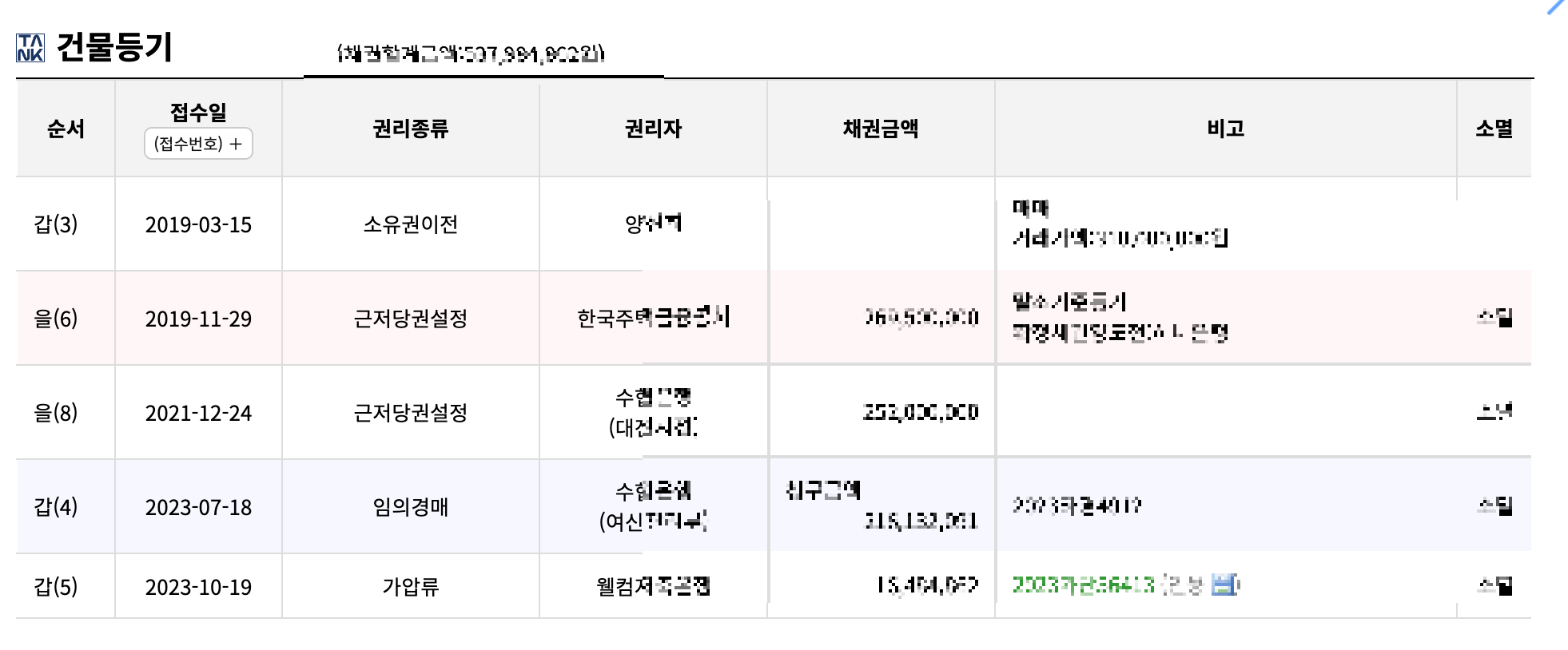 4. 대전 서구 둔산동 샘머리아파트 등기 분석