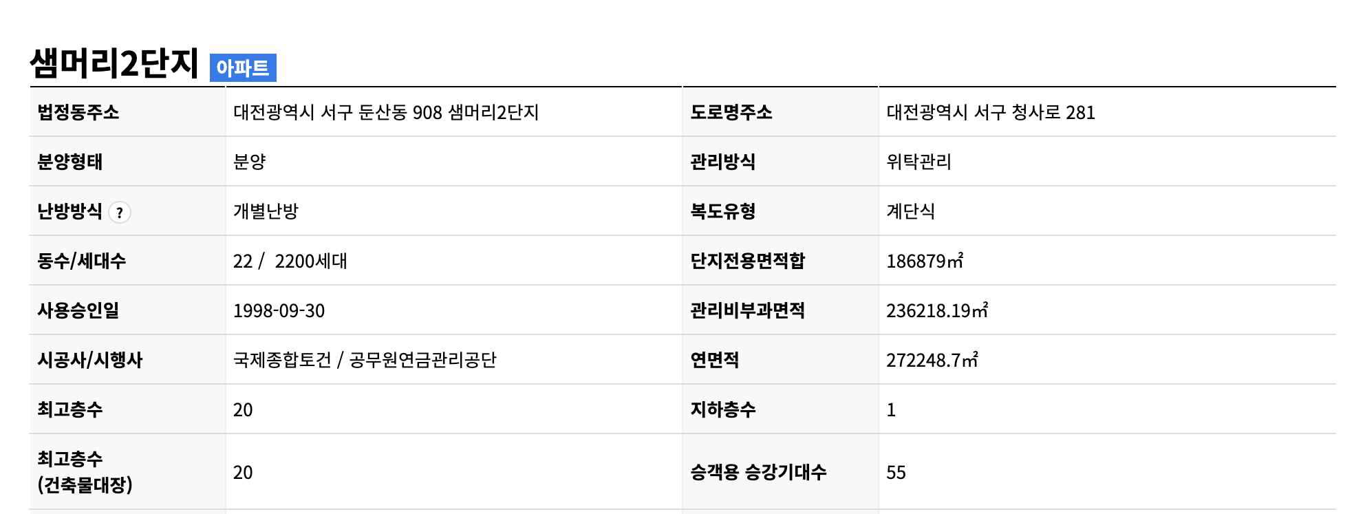 2. 대전 서구 둔산동 샘머리아파트 단지정보