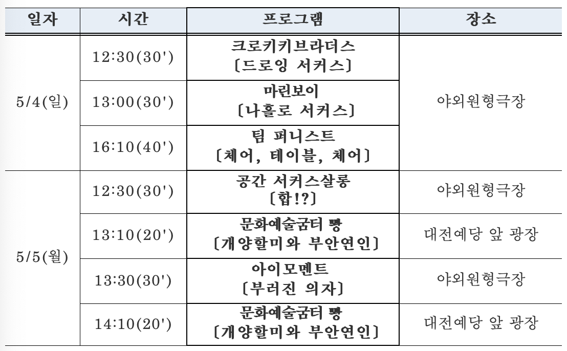 - 공연장소: 대전예술의전당 야외원형극장 및 전당 앞 광장