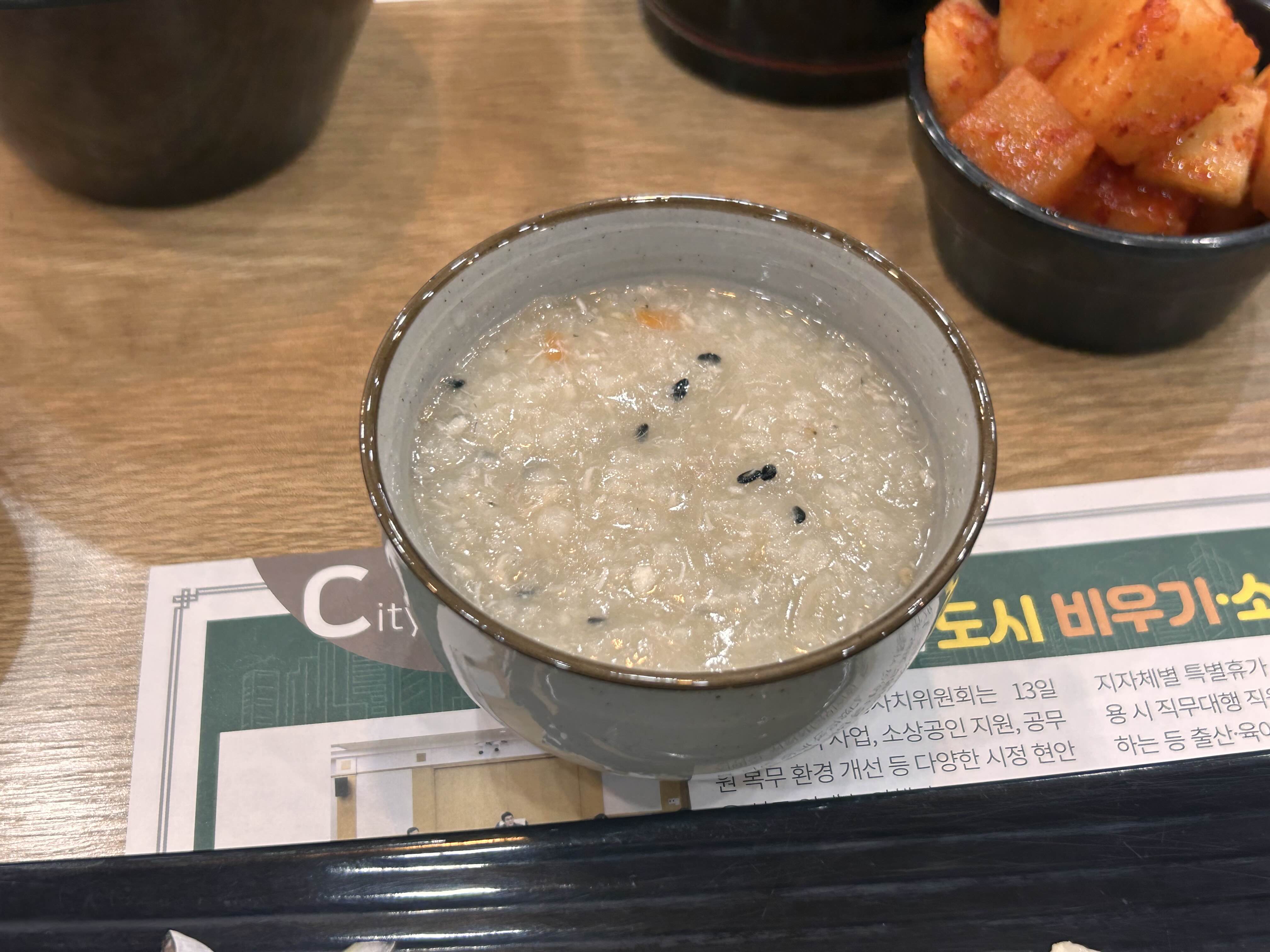 우선 따뜻한 죽을 먹고 속을 달래 보았어요. 게살죽 인거 같기도 하고, 참치죽!? 암튼 해산물의 느낌이 나는 죽인데 맛이 꽤 좋았어요. 양이 은근히 많더라고요.