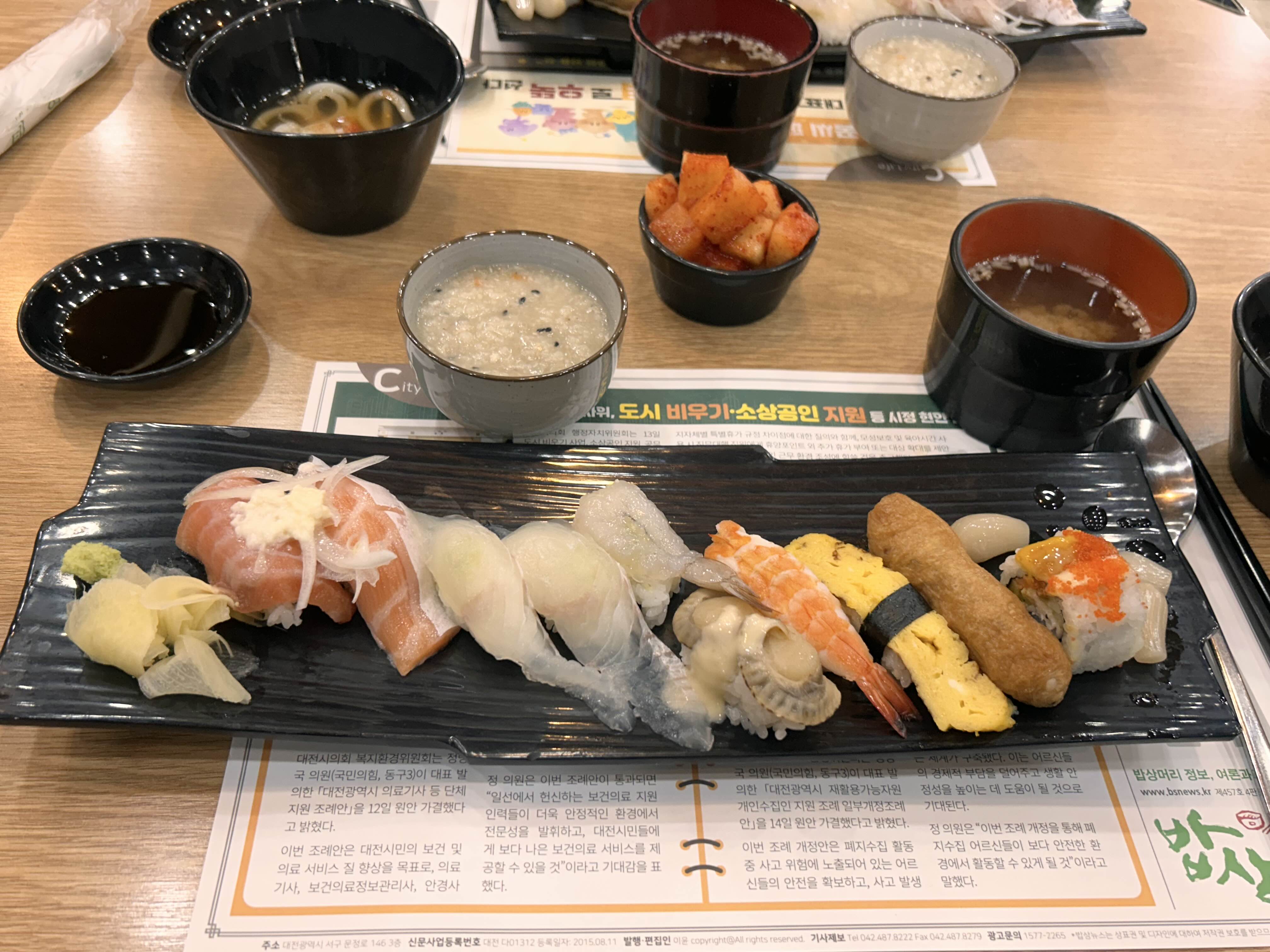 점심시간 월평동에 방문해서 적당한 식당을 알아보다가 발견한 곳! 사실 육개장을 먹고 싶었는데, 주차가 어렵다 보니 겉모습에 끌리는 식당을 보고 바로 들어가게 되었어요. 이끌림으로 찾아간 곳인데 구성도 좋고 맛 좋은 점심특선 초밥을 먹게 되어 소개해 보려 합니다.