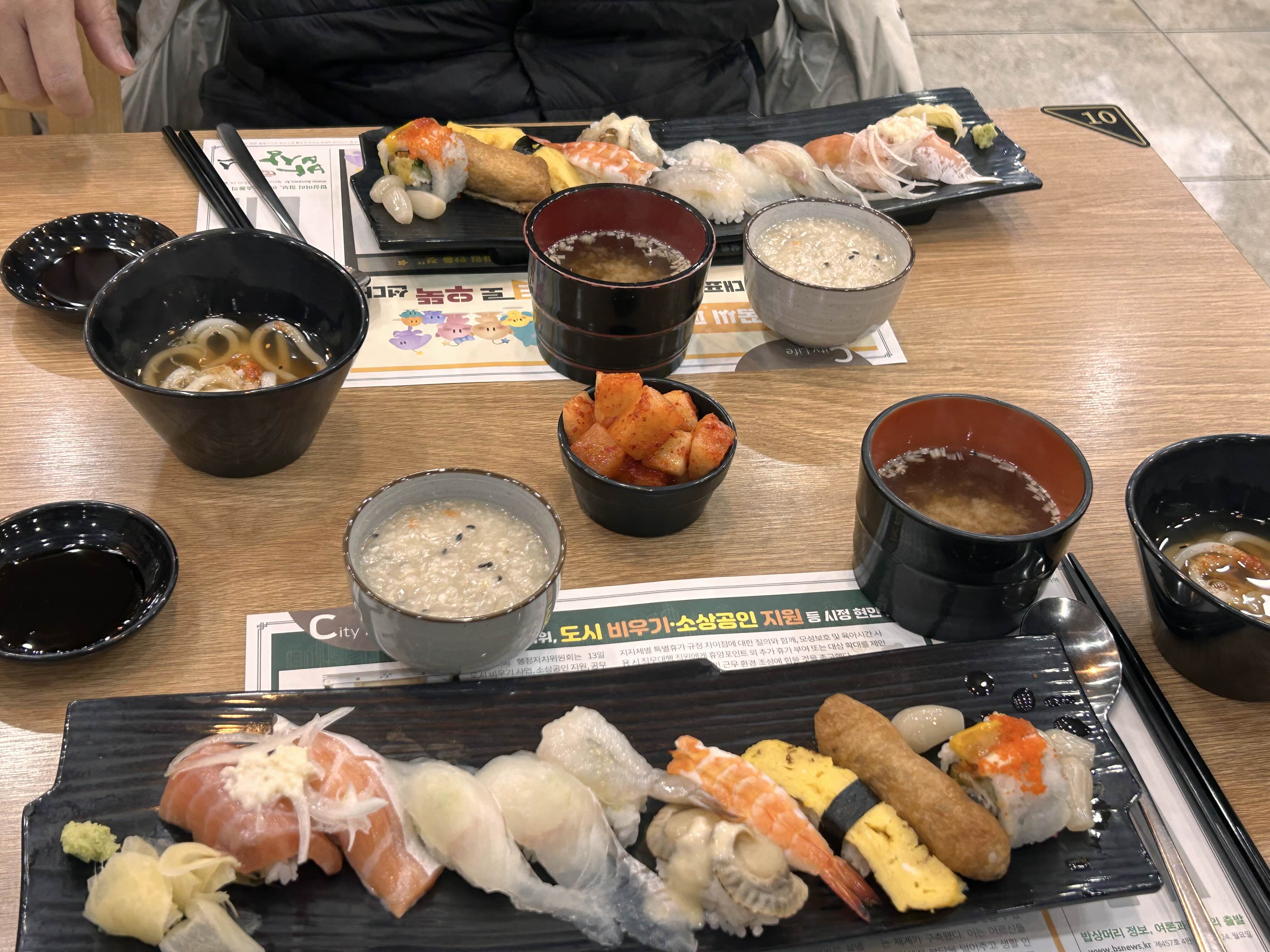 초밥 하면 회라는 차가운 느낌이 강해서 추운 날 어울리지 않는다고 생각할 수도 있는데요. 오히려 따뜻하고 속이 풀리는 맛이었어요. 초밥의 밥도 따뜻하고 함께 나온 죽과 국 그리고 따뜻한 물까지 있어서 몸을 잘 녹이고 식사도 만족스러웠습니다.