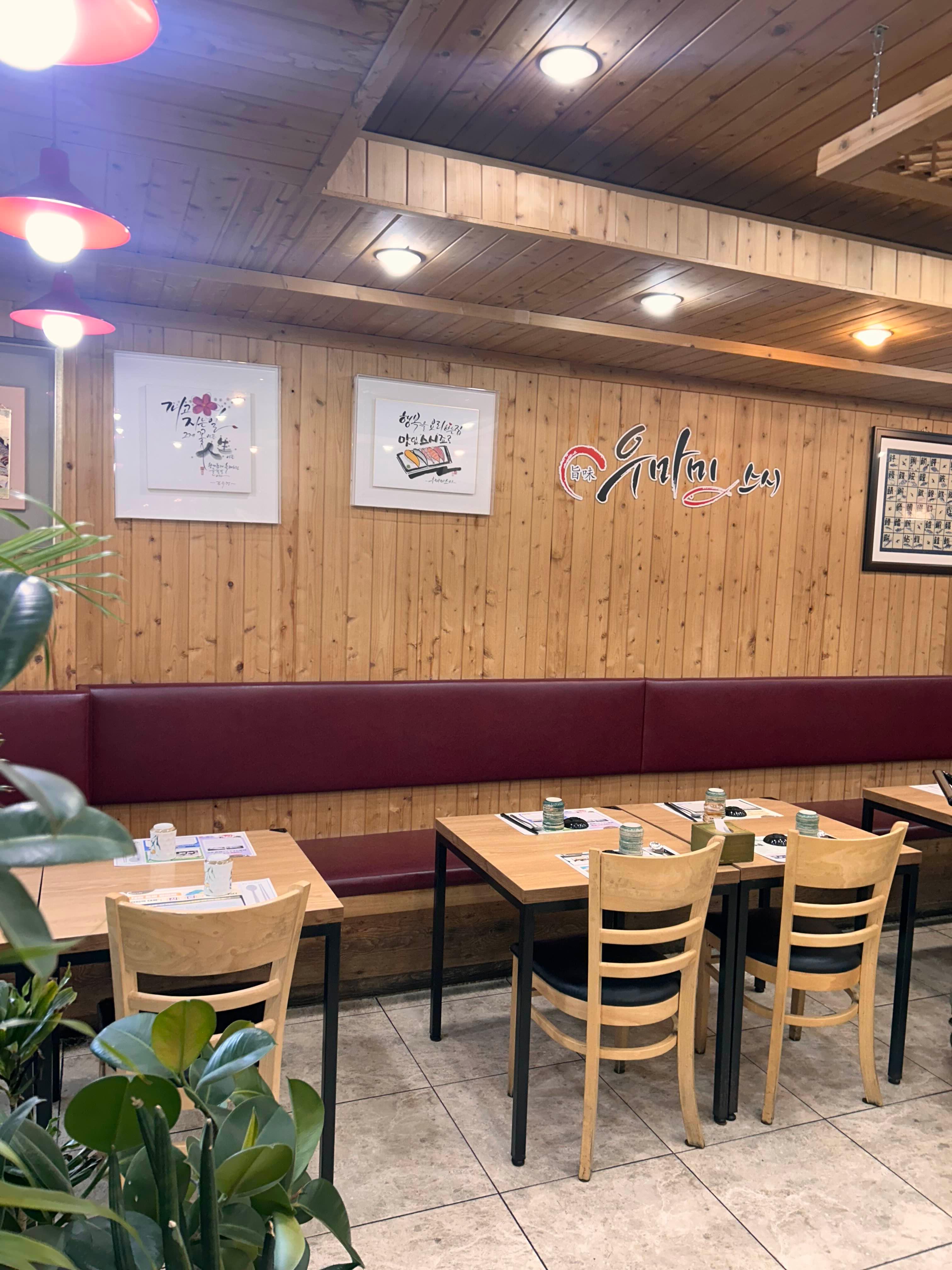 왼편으로 다 이어 붙으면 여러 명이서도 식사가 가능해서 회식장소로도 많이 오는 거 같아요. 회식 예약하시고 가는 손님 발견! 큰 식당보다는 적당하거나 작은 크기의 식당이 오히려 소음도 적고 편안하게 회식이 가능할 거 같아서 괜찮다는 생각이 들더라고요.