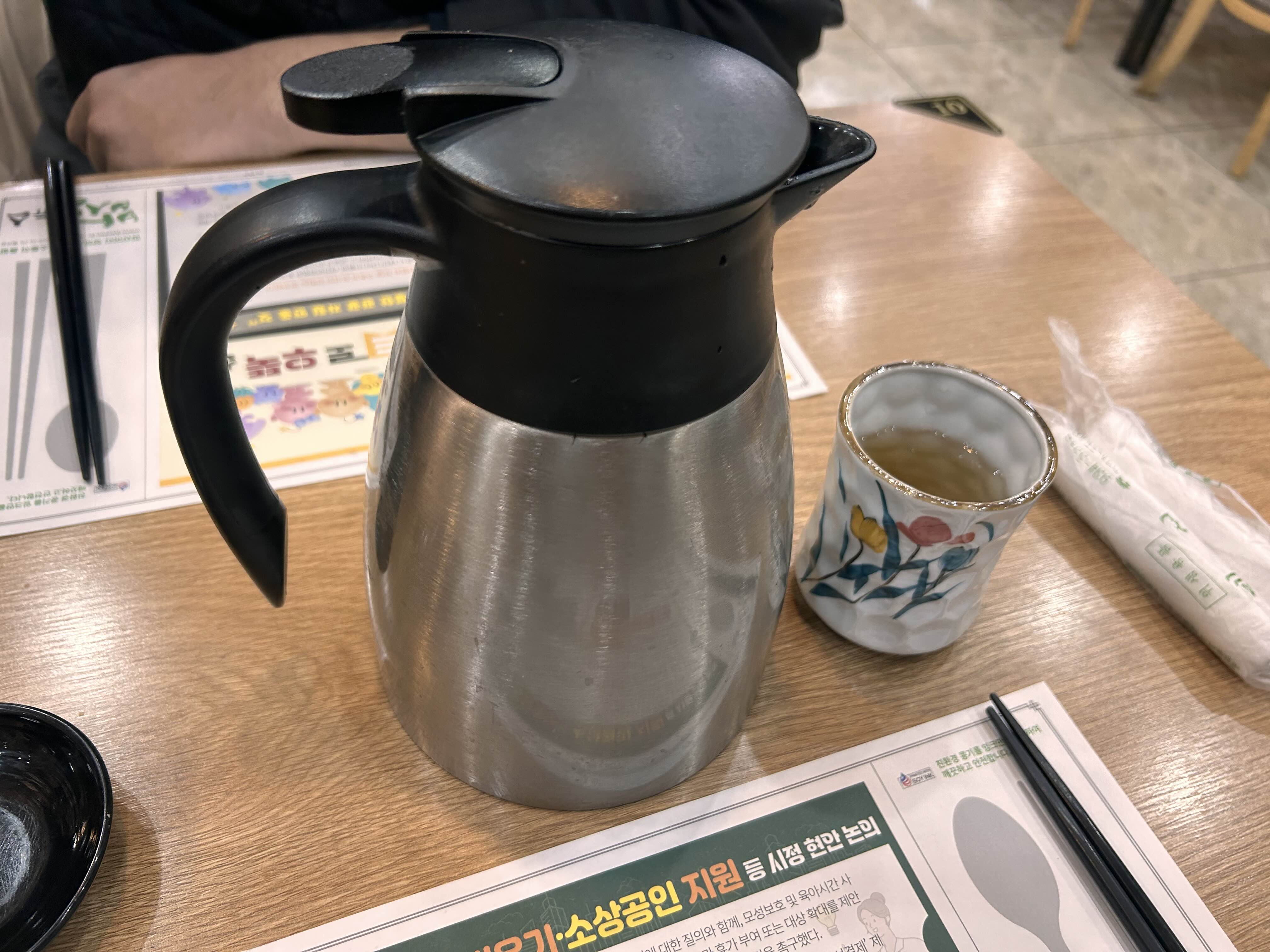 자리에 앉으니 사장님께서 따뜻한 물 시원한 물을 물으시고는 말씀드린 따뜻한 물을 가져다주셨어요. 보리차인 듯 맛이 좋았어요. 밖이 워낙 추워서 따뜻한 차를 주시니 한결 기분이 좋아져요.