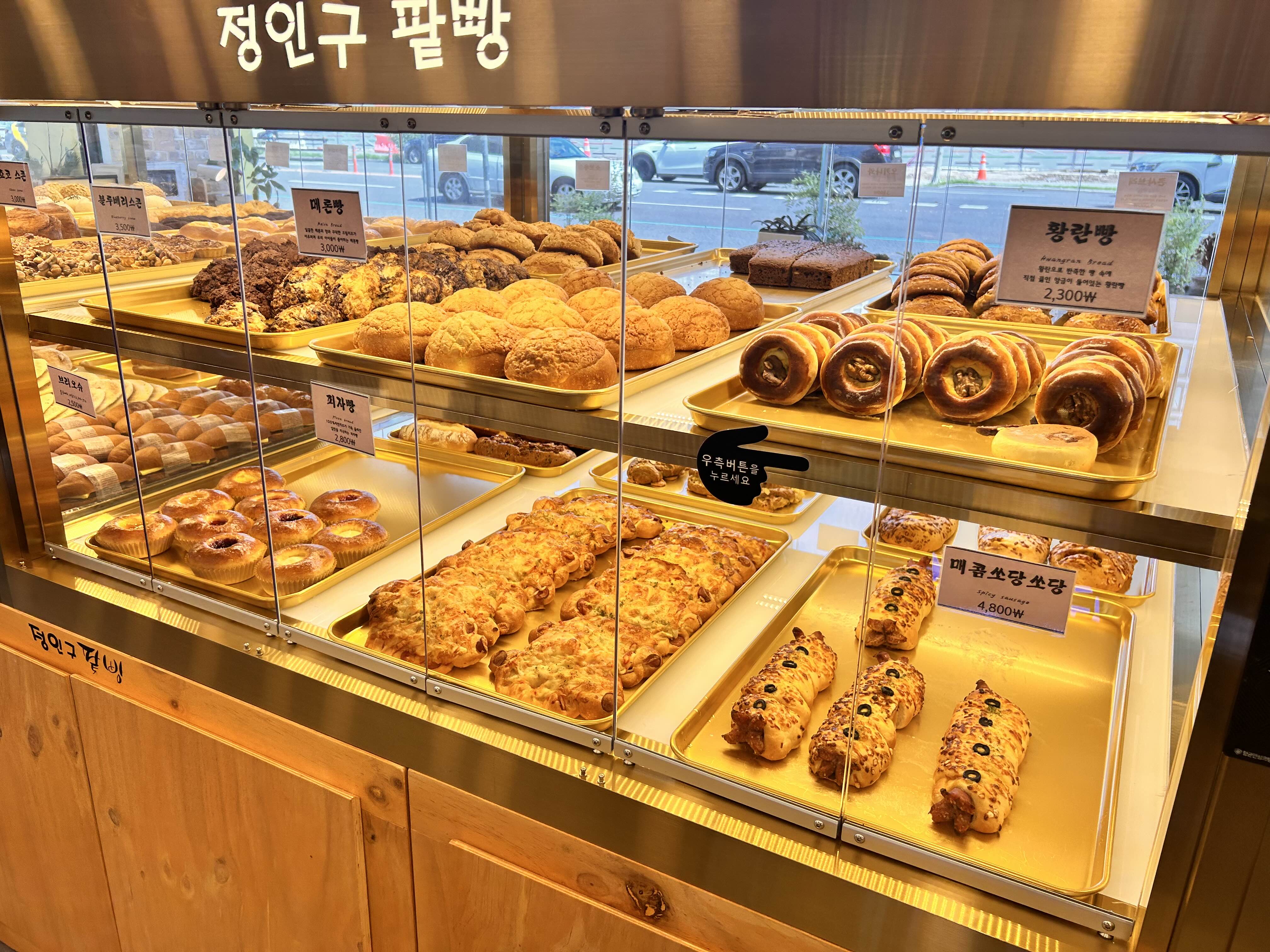 매장 내부가 정말 밝고 깨끗해서 놀랬어요. 빵들도  안쪽에 보관되어 있어서, 정말 위생적으로 보이더라고요. 빵 종류도 정말 많아요. 이곳에서 제일 유명한 팥빵, 야채빵 뿐만 아니라, 베이글, 깨찰빵, 쫀득이빵, 마늘바게트 등 없는 빵이 없어요.
