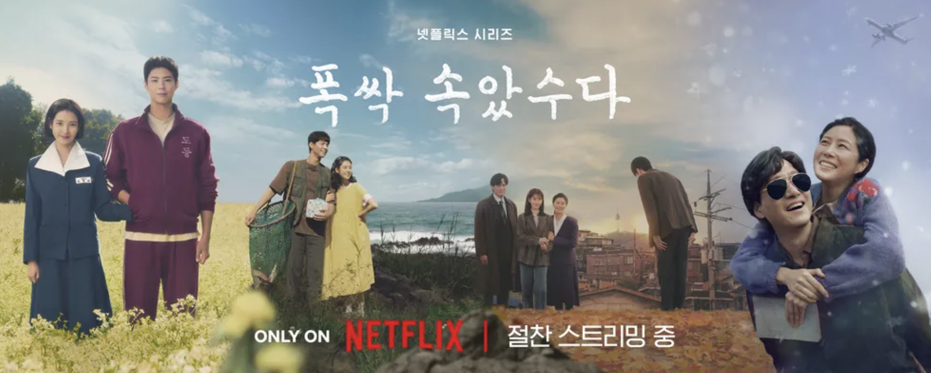 폭싹 속았수다는 단순한 남녀의 사랑이야기가 아닌 우리 삶의 드라마를 표현한 작품입니다. 한 사람의 인생, 그 안에 담긴 희노애락을 제주도라는 아름다운 무대위에서 섬세하게 풀어내고 있습니다. 이 드라마를 보며 마음이 아픈순간에 함께 울고, 즐거운 순간에 행복해 했던 기억은 사람들의 감성을 건드리고 이를 통해 힐링을 받을 수 있습니다.
