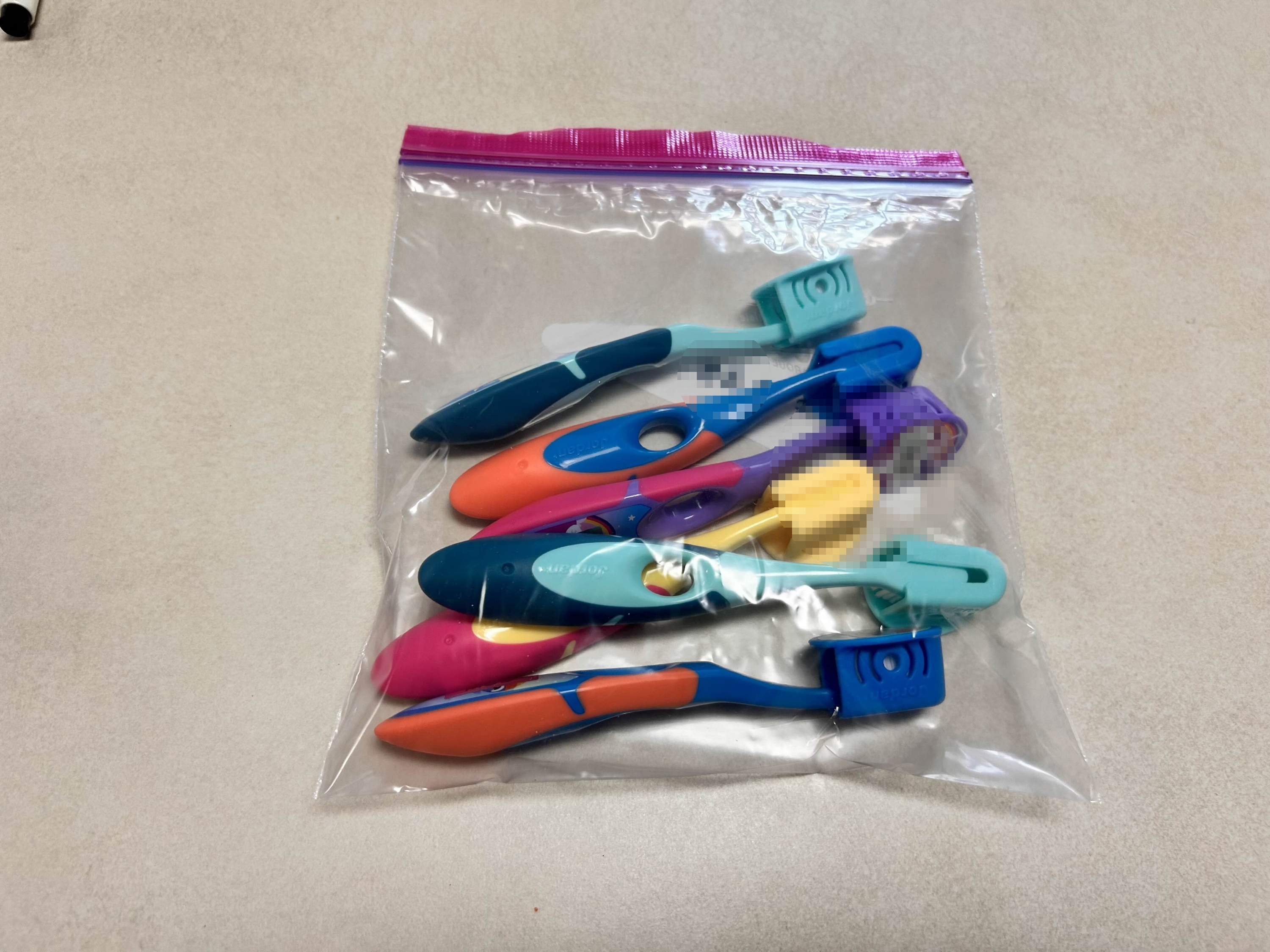 이름표를 써붙인 칫솔을 지퍼백에 담아서, 어린이집으로 보내면 되겠네요~!