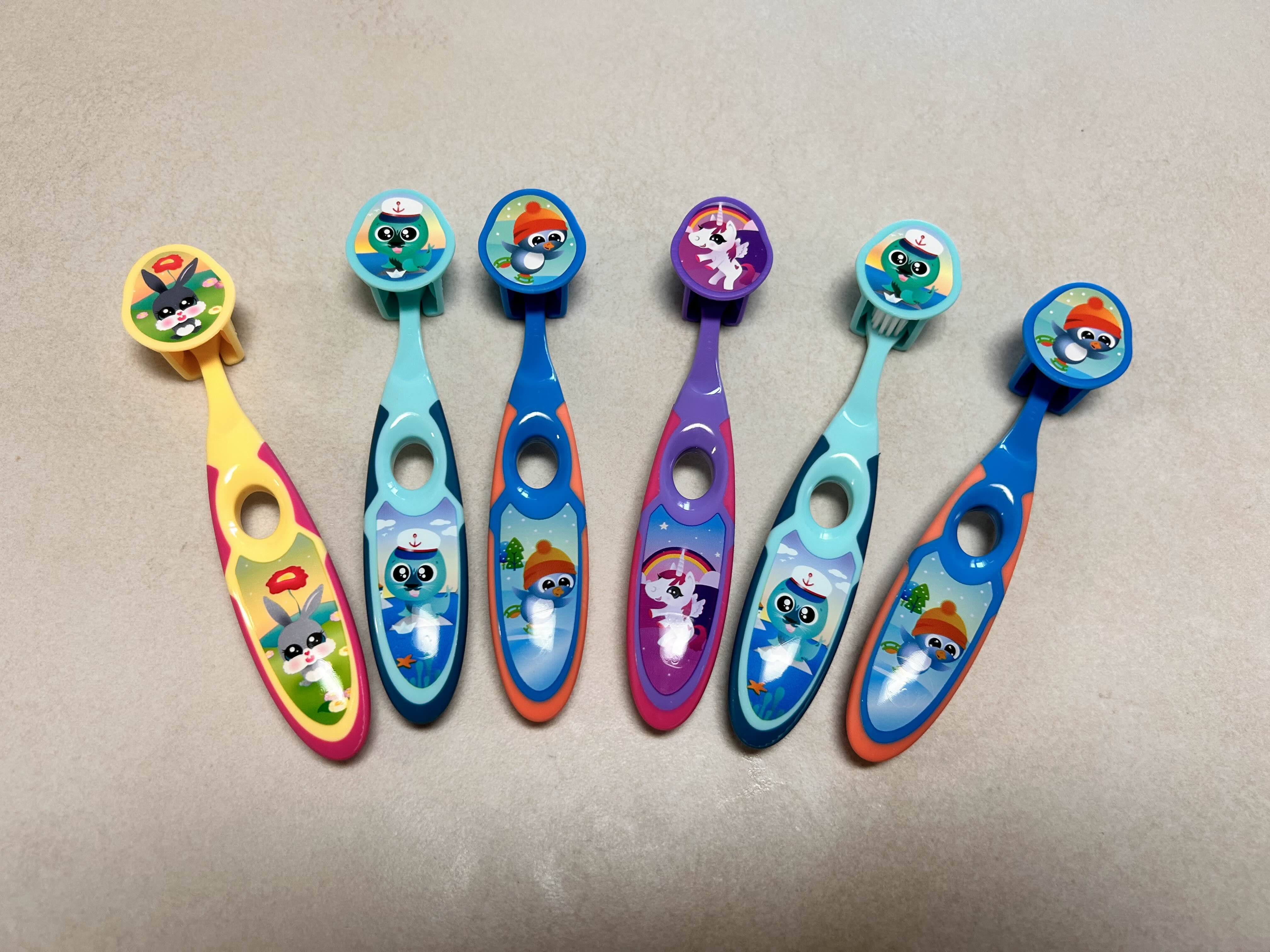 포장을 제거하고 각각의 뚜껑에 맞게 꽂아주었어요. 아이가 이걸들고서 치카치카 예쁘게 양치하는 모습을 상상해 보니 너무 귀여워요.
