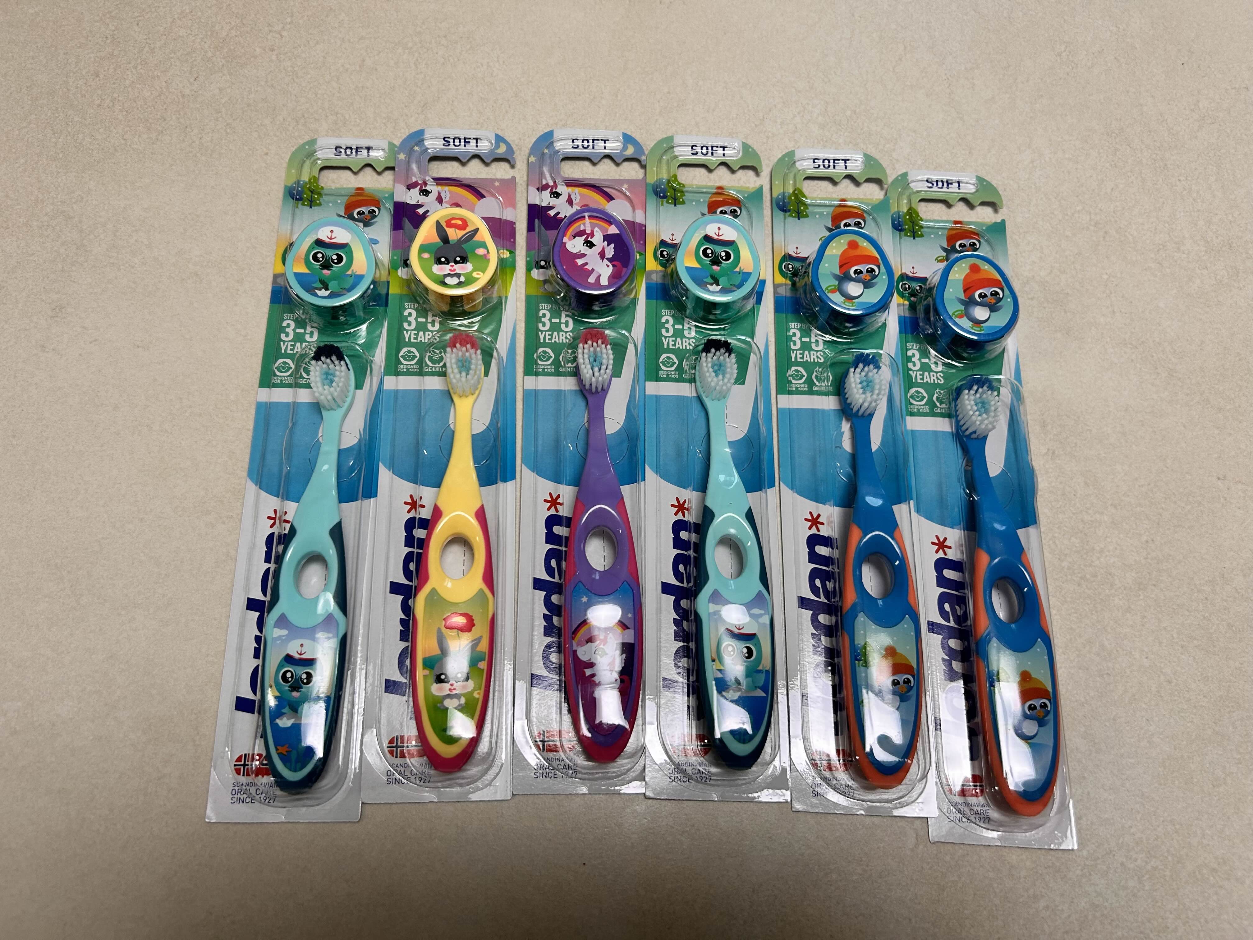 3-5세 아이가 사용하기 좋은 부드러운 칫솔모에 손에 착 감기는 손잡이가 맘에 드는 조르단 칫솔이에요. 게다가 칫솔 뚜껑까지 있으니 어린이집 준비물로 보내기 아주 딱이죠~!^^ 준비물 보낼 때 참고하세요 ㅎㅎ