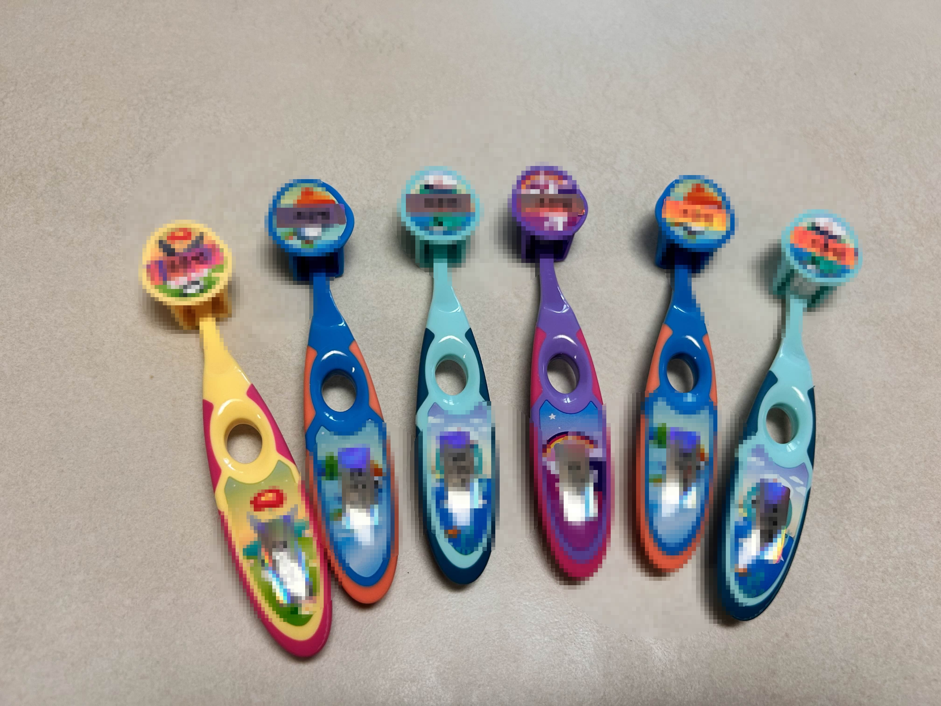 포장을 제거하고 각각의 뚜껑에 맞게 꽂아주었어요. 아이가 이걸들고서 치카치카 예쁘게 양치하는 모습을 상상해 보니 너무 귀여워요.