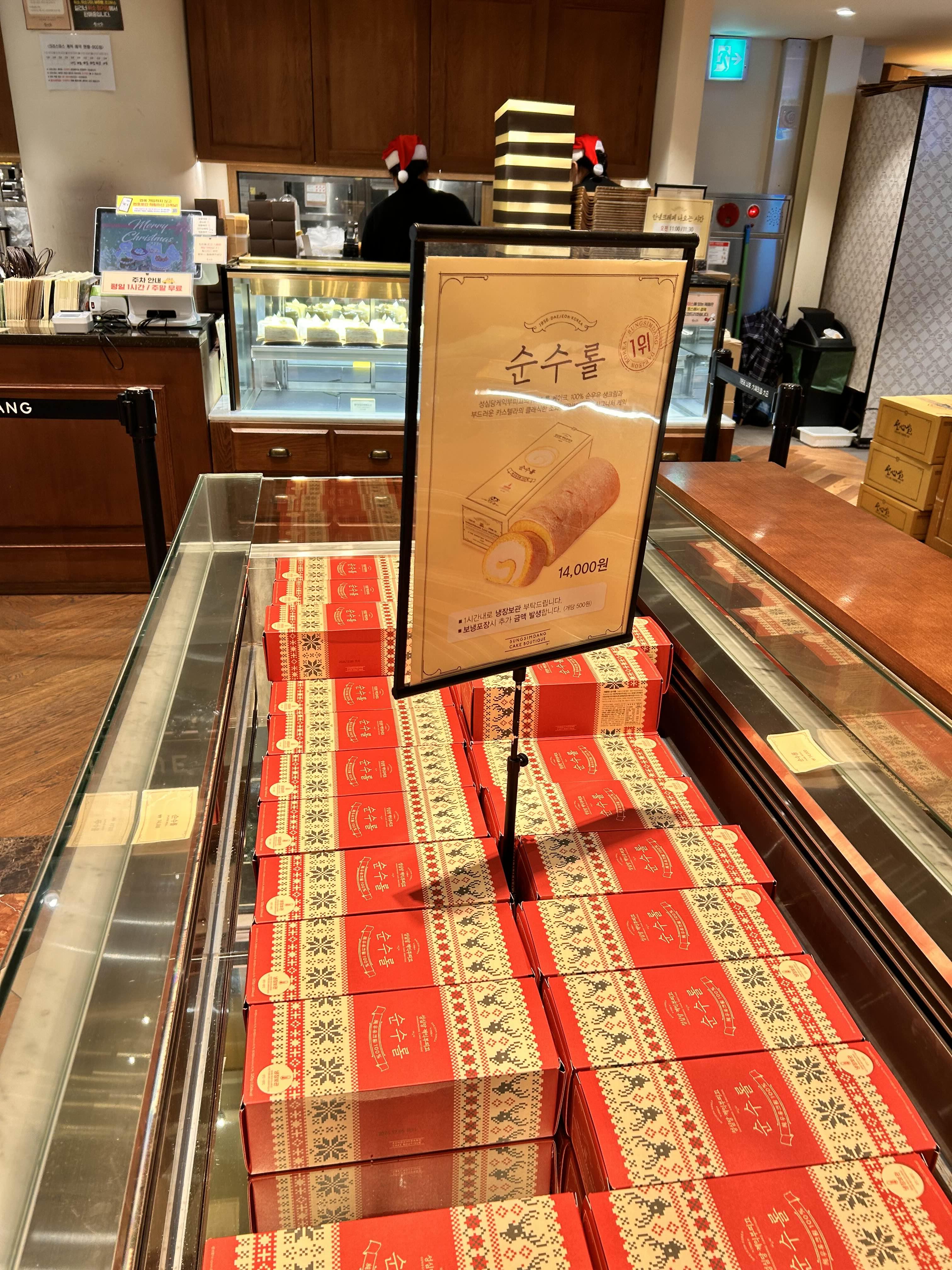 오늘은 케익을 먹을거라 왼쪽만 딱 구경하고 순수롤을 구입하였는데요. 요즘나온 밤 미니케이크가 눈에 띄었어요. 저녁에 오니 냉장고가 대부분 비어있었어요. 큰 홀케이크도 점점 줄어드는 모습이 신기했어요. 역시 대전 케이크는 성심당이죠.