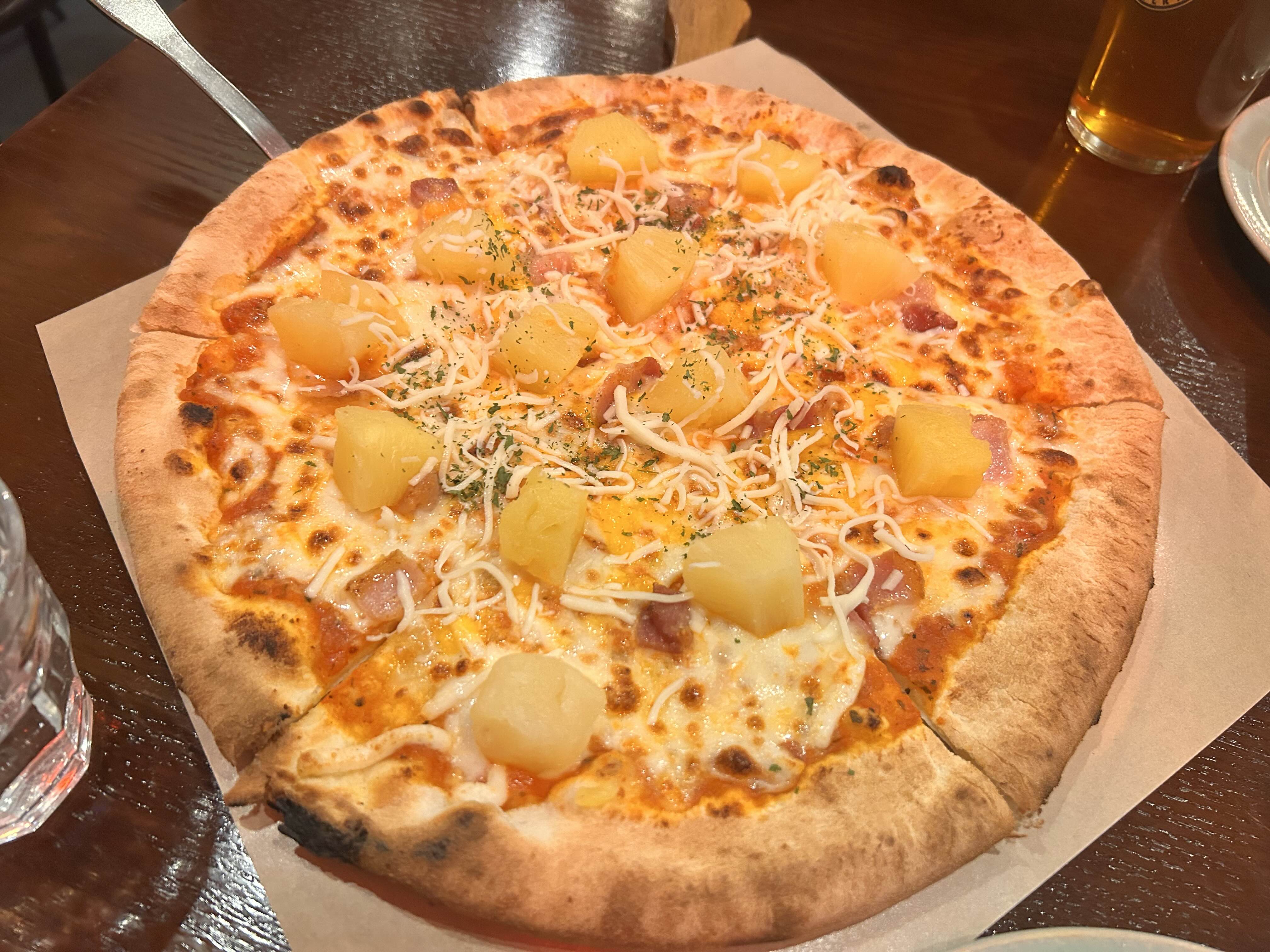 이곳 노리스피자에서는 알로하라는 이름으로 판매하고 있었어요. 토마토소스가 발라진 도우 위에 피자 그리고 파인애플이 올려 있는데요. 상큼하고 달콤한 맛이 정말 맛있었어요.