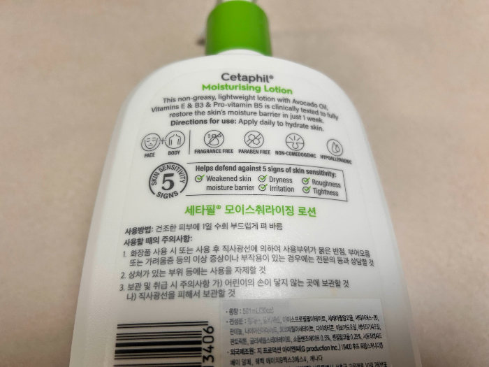 순하고 향도 없어서 예민한 피부이신 분들에게도 알맞은 로션이라고 할 수 있어요. 유아로션, 어린이로션으로 좋은 세타핑 모이스처라이징 로션이에요.