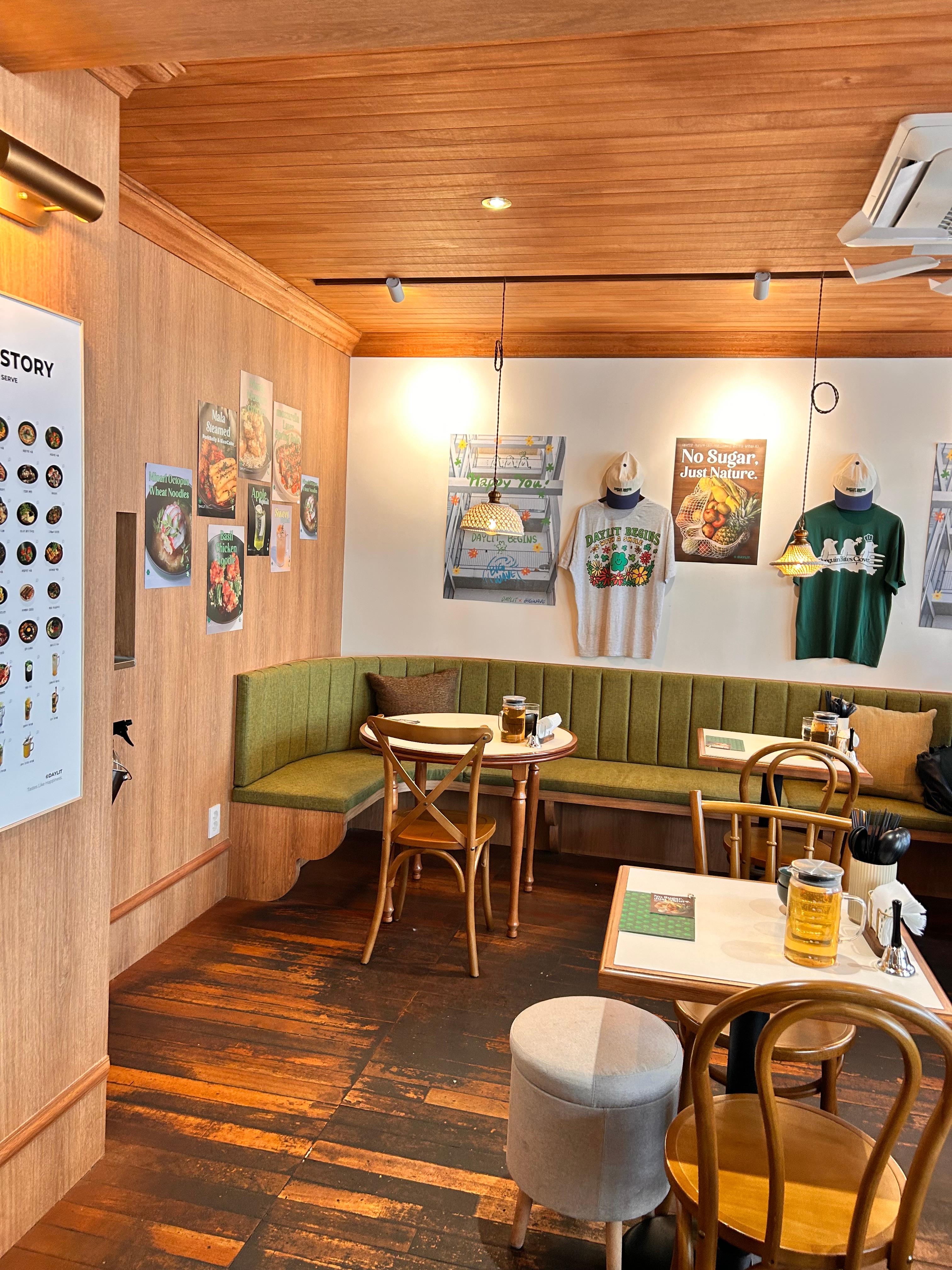 벽면에는 티셔츠도 걸려있고, 포스터도 걸려있는데 No sugar 라는 글이 눈에 띈다? 정말 노슈가? 요즘 제로음식이 대세라 이 식당도 대세를 따르는 중인 듯싶다. 건강하지만, 맛있을 거 같은 느낌!