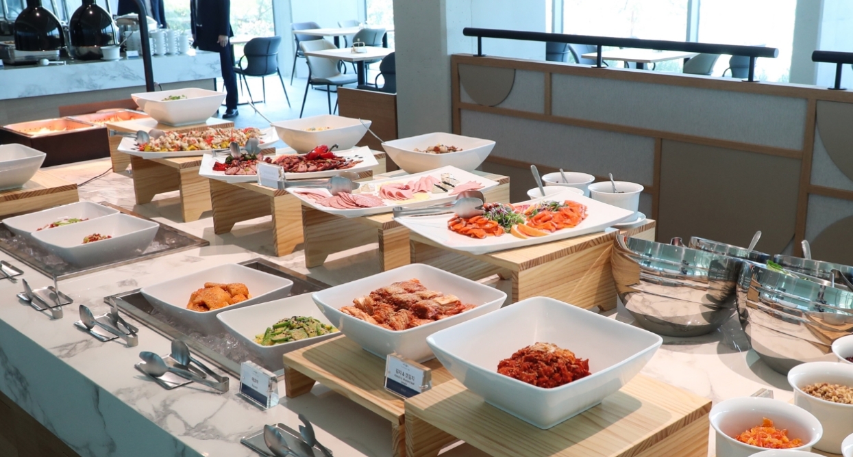 - 숙박고객의 경우 객실 예약시, 조식 2인 패키지로 선 결제가 가능합니다. 숙박예약 시 함께 결제할 경우 1인당 성인 20,000원으로 식사가 가능합니다. 자세한 사항은 예약 시 문의하시길 바랍니다.