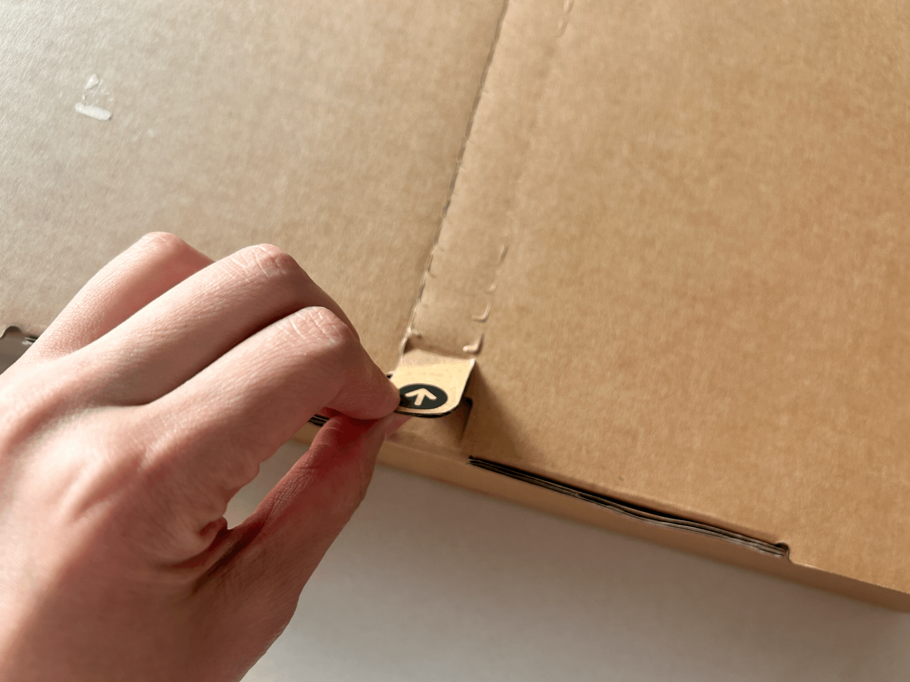 코스트코 박스를 열어보니 이렇게 생긴 박스가 또 하나 들어있었습니다. 검은색 화살표 모양을 조심스럽게 열어보았어요.