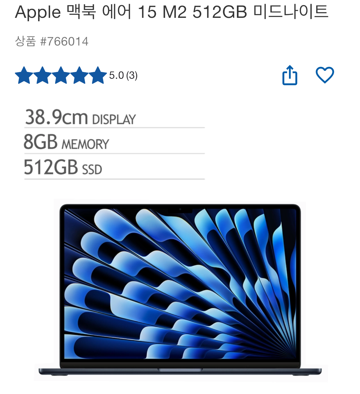 코스트코 온라인몰 : MacBook Air 15인치 M2 512 GB 미드나이트 선택