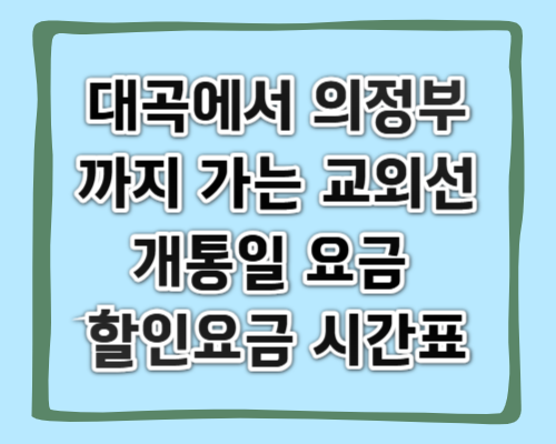 대곡에서 의정부까지 가는 교외선이 개통되었는데요. 1월 9일부터 승차권 판매를 시작하여 드디어 1월 11일부터 이용이 가능하게 되었습니다. 이번글에서는 교외선의 개통일과 요금 그리고 시간표에 대해 알아보겠습니다. 또한 이번 교외선 운행재개 기념으로 할인요금이 적용되니 내용을 자세히 확인해 주세요. 목차1. 교외선 개통 - 개통일 - 노선 - 예매방법2. 교외선 요금 - 요금 - 할인요금3. 교외선 시간표1. 교외선 개통 개통일: 교외선의 개통일자는 2025년 1월 11일 토요일입니다. 노선: 대곡역에서 의정부역까지 무궁화호가 8회 운행합니다. 정차역은 대곡, 원릉, 일영, 장흥, 송추 그리고 의정부 역인데요. 전체 시간으로 따져보면 총 50여분의 시간이 소요됩니다.예매방법: 코레일톡 앱, 레츠코..