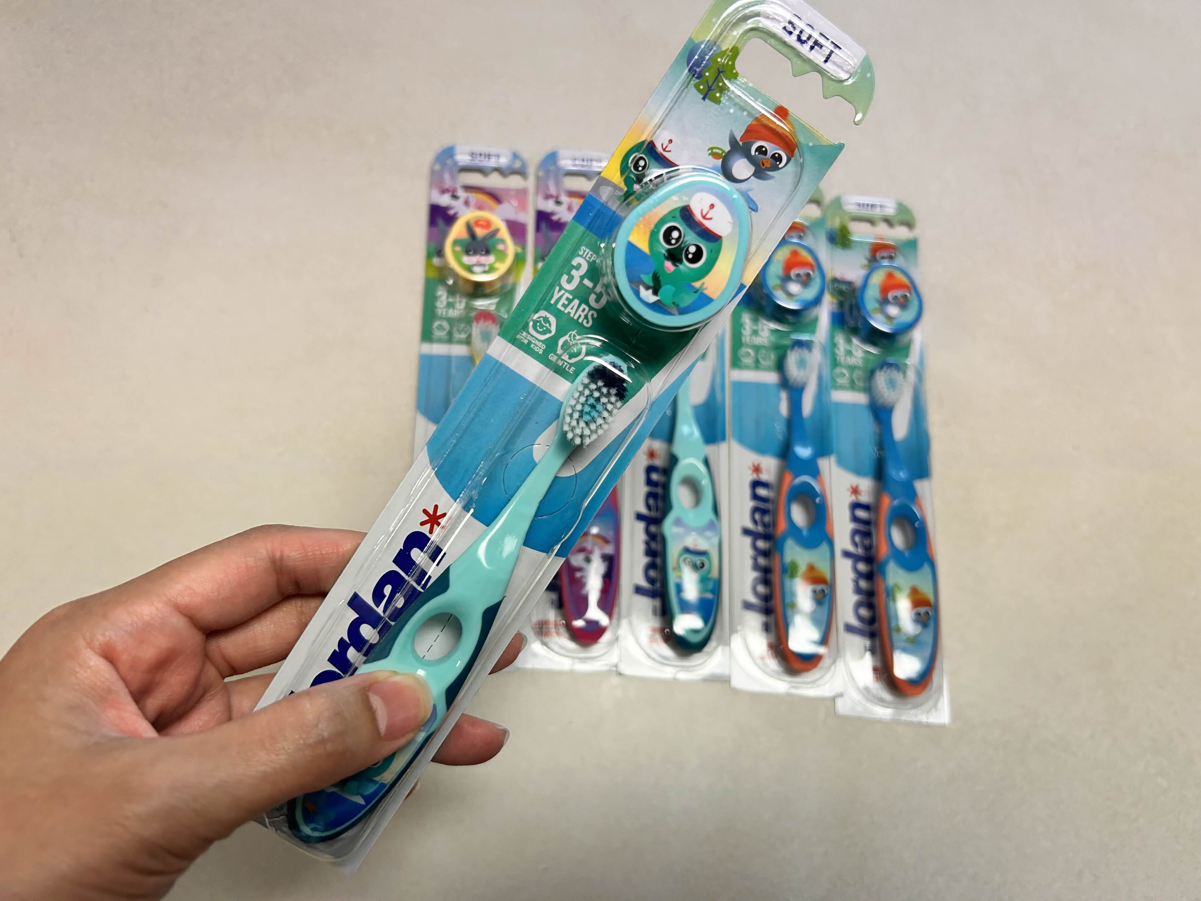아이 어린이집에 보낼 어린이칫솔을 구매했어요. 하반기 분량이라 6개가 딱 필요했는데요. 6개 묶음에다가 아기 때부터 썼던 칫솔 브랜드라 또 구매하게 되었어요. 색 구성은 파랑 두개, 하늘색 두 개, 노랑 하나, 보라 하나 이렇게 총 6개의 칫솔로 구성되어 있어요. 그리고, 큰 특징 중 하나가 각각 칫솔별로 뚜껑이 있다는 점이에요. 아이 물건을 어린이집에 보낼때는 하나하나 물건에 이름을 써서 보내야 하는 게 대부분이죠. 이름을 직접 네임펜으로 쓰기도 하고, 이름표 스티커를 부착하기도 해요. 저는 이름표 스티커가 편해서 포장을 다 제거한 후에 이름표 스티커를 부착할 예정이에요. 각각 이름표를 부착하고 한데 모아서 보내게 되면 칫솔모가 휠 수도 있고, 위생상으로도 좀 안 좋을 거 같다는 생각이 들었는데요. 이..