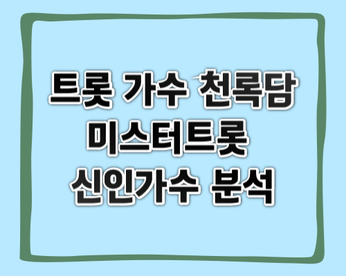 2024년 미스터트롯 3을 통해 이름을 알린 천록담에 대해 궁금하신가요? 낯익은 얼굴에 많이들 반가워하셨을 인물인데요. 이번 글에서는 미스트트롯에 등장한 트롯 가수 천록담에 대해 알아보겠습니다. 트롯 가수 천록담은 누구?천록담은 미스터 트롯에 등장한 신인 트롯 가수입니다. 이 인물은 바로 가수 이정인데요. 이정의 부캐로 천록담이란 이름을 갖고 등장한 것입니다. 천록담의 뜻은 천지와 백록담을 합친 단어로 백두산 천지에서 한라산의 백록담까지 사랑과 낭만을 노래한다는 뜻으로 만들어졌다고 합니다. 낭만 있는 트로트를 전해줄 천록담의 노래가 정말 궁금해집니다. 천록담의 음반천록담의 음반으로는 미스터트롯에서 불렀던 음악들이 있습니다. 예선전에서 선보인 '어매', 장르별 팀배틀에서 선보인 '나는 너 좋아' 그..
